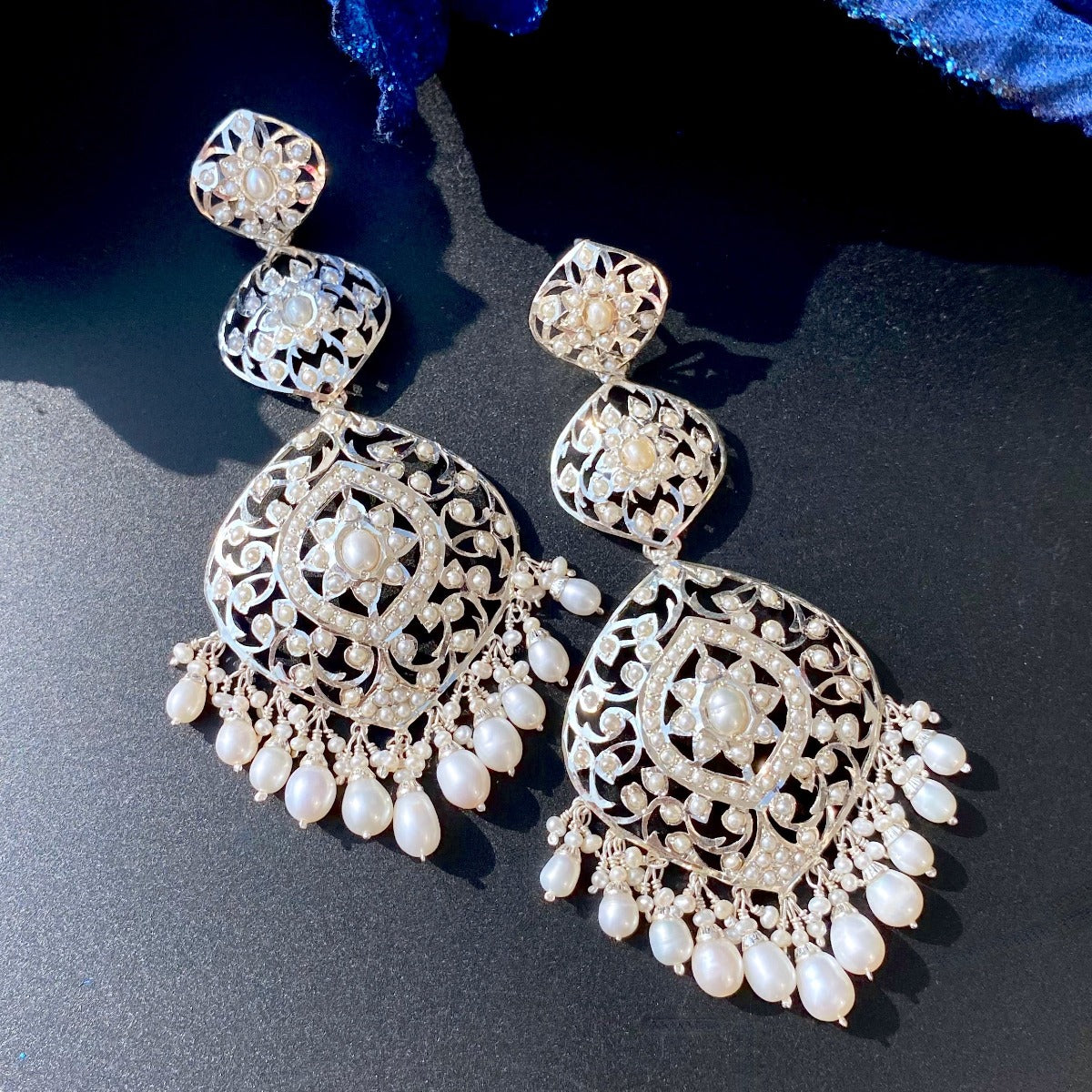 Antique Look Pearl Danglers | Pure 925 Silver Earrings | Fusion Jewelry SER 045