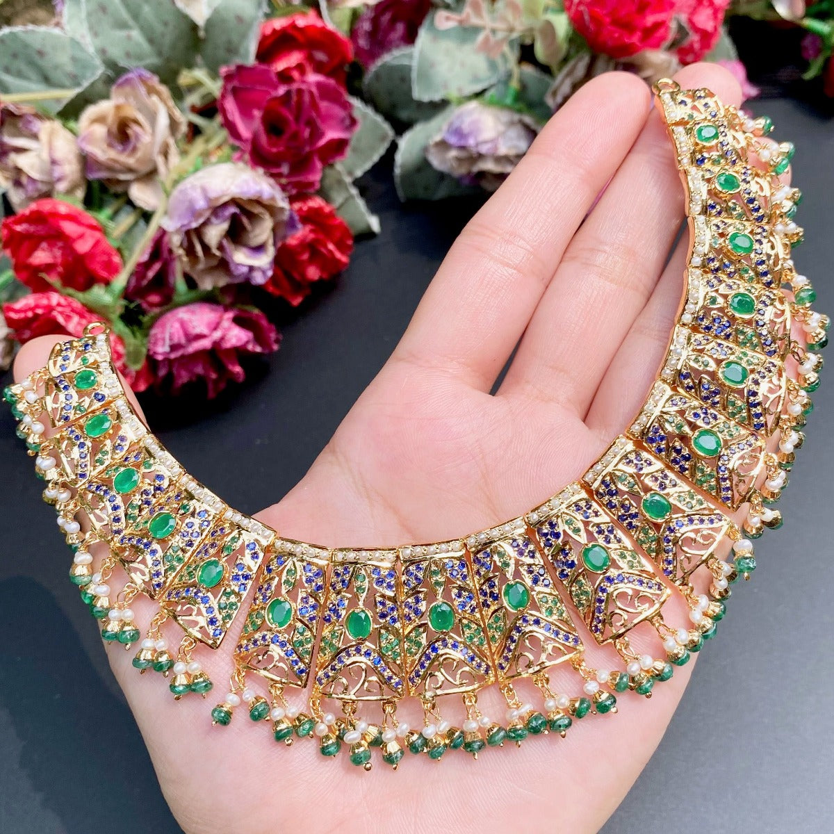 Gold Plated Jadau Necklace Set | 925 Silver Necklace Set NS 218