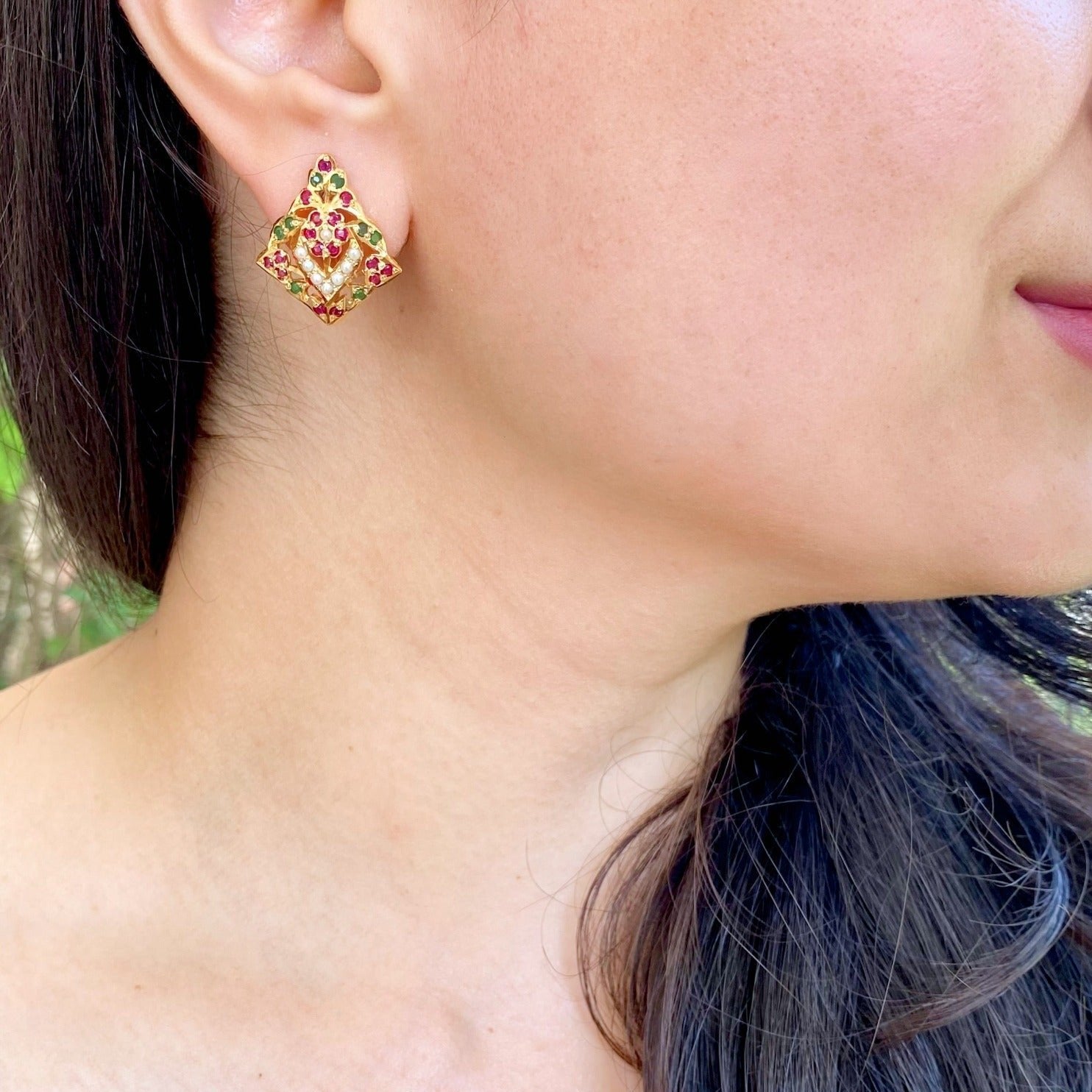 Gold Plated Studs for Women | Ruby Emerald Earrings on 925 Silver ER 618