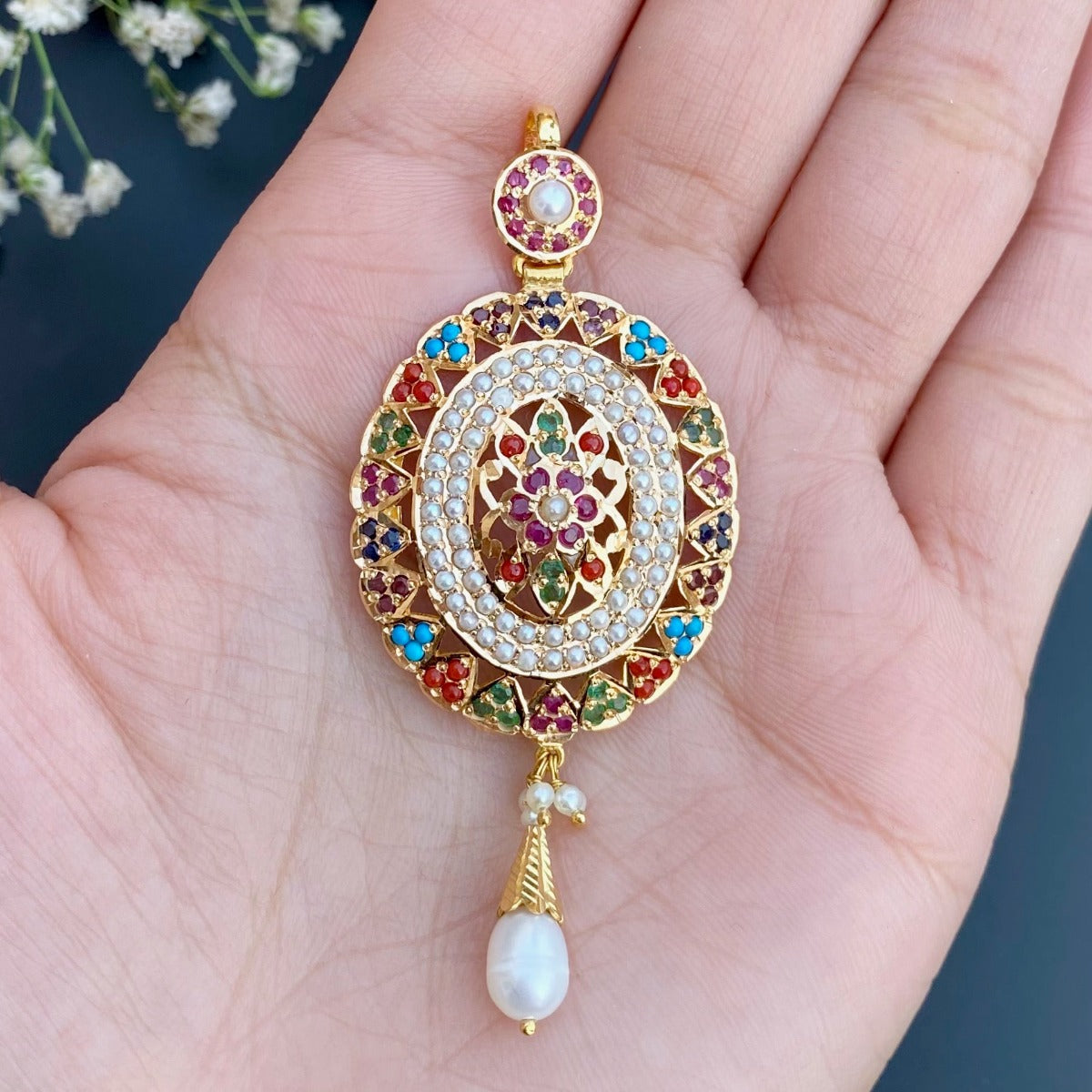 Buy Navaratna Pendants Designs Online | Unique Handmade Indian Jewelry GPS 033