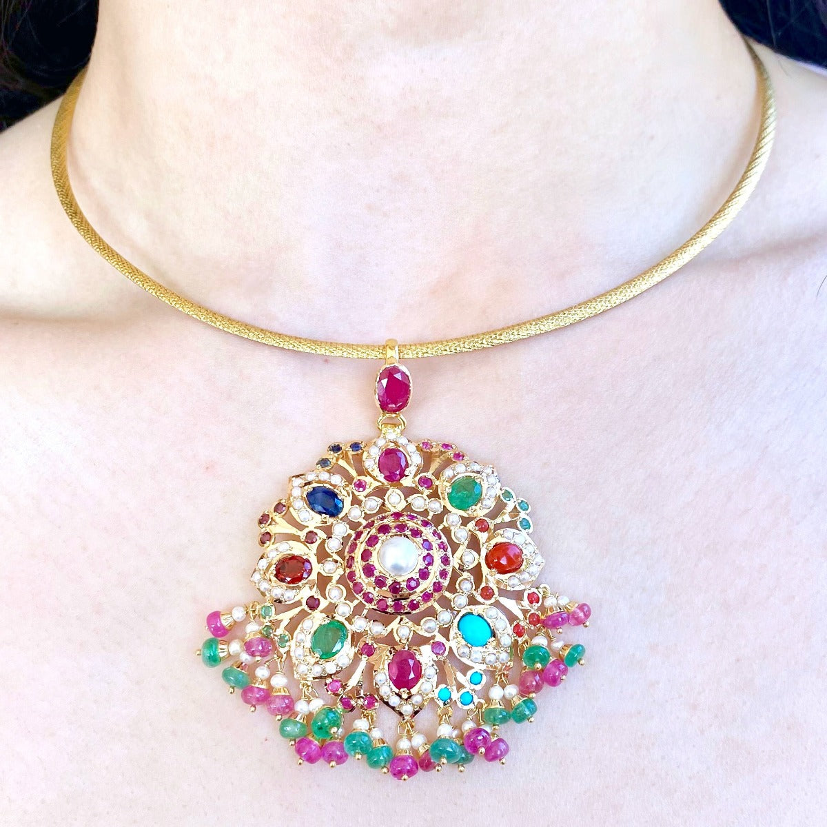 Evergreen navrathan pendant set in 22ct hallmarked gold.