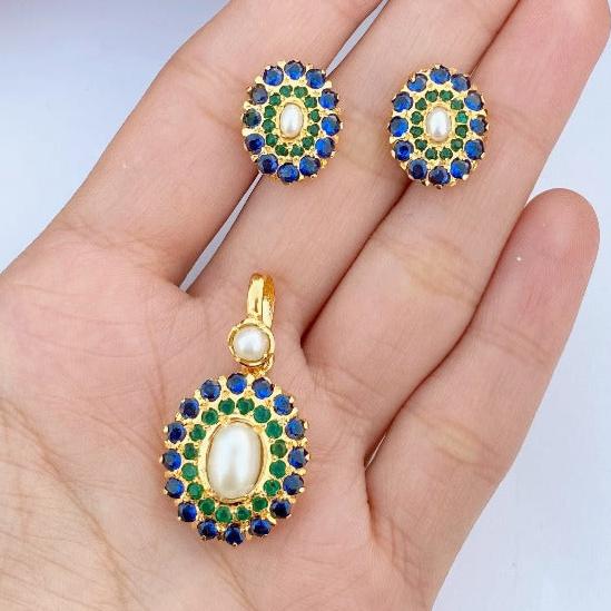Sober & Elegant Locket & Tops Set | Indian Jadau Jewelry | Gold Plated PS 076