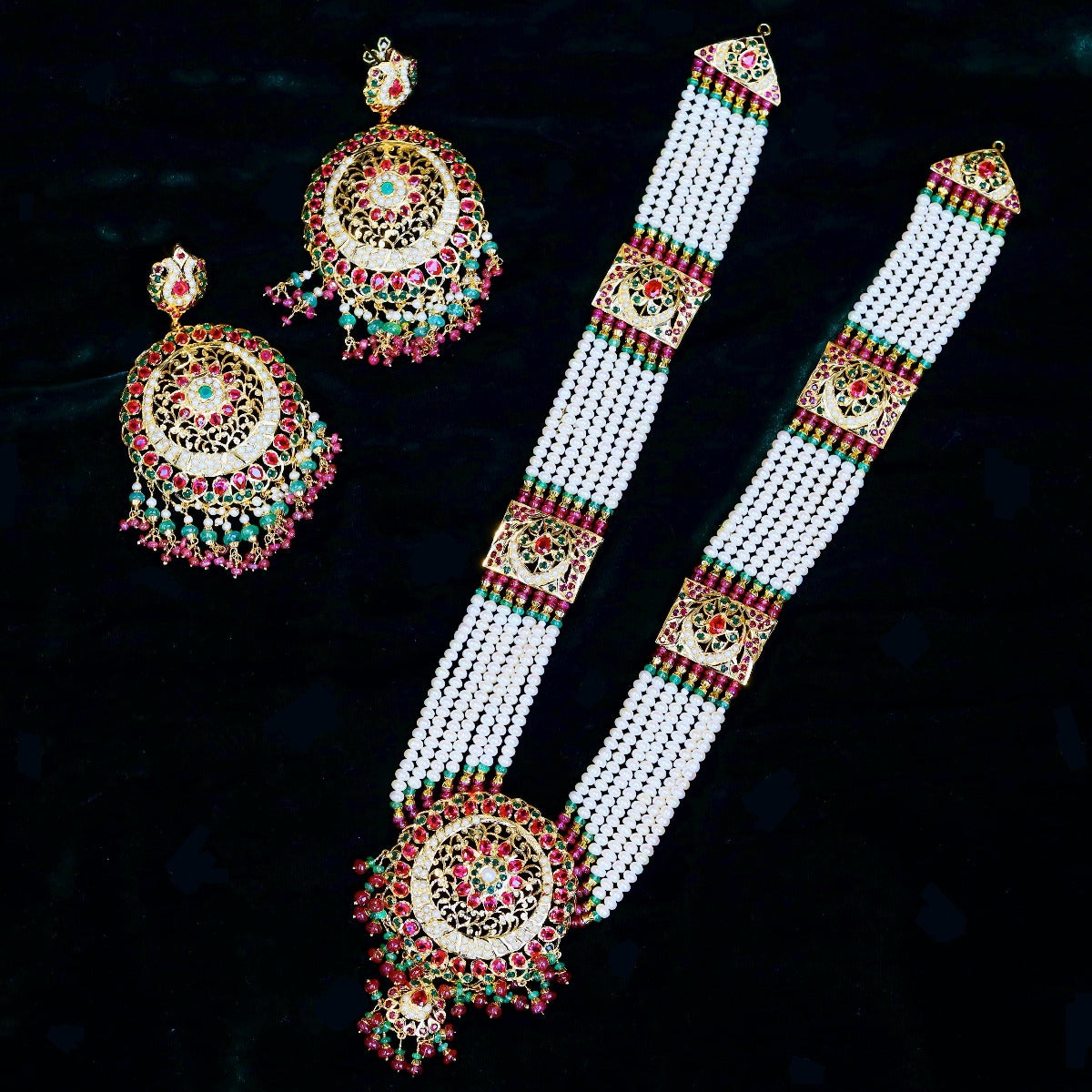 Multicolored Jadau Rani Haar Set in Gold Plated Silver HR 001