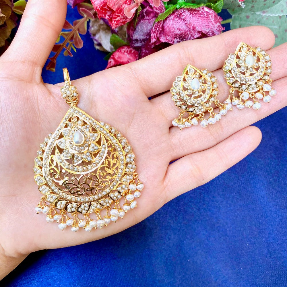 Original Pearl Pendant Set in Silver with Gold Plating PS 030