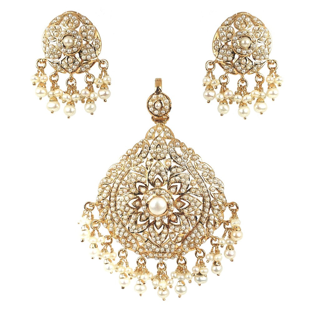 Jadau Pendant Set with Pearls on Sterling Silver with Gold Plating PS 003